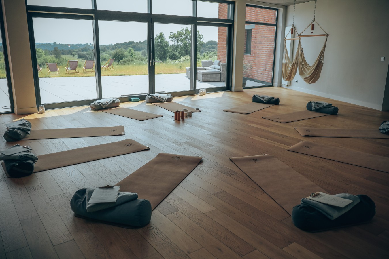 Wyposażenie sal: maty do jogi, bolstery, kostki, kocyki do medytacji, koce jogowe